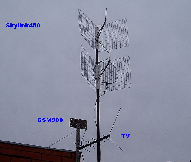 Собрал такую антенну(фото) на 450 мгц,Skylink.На расстоянии 25 км полный индикатор,интернет 1x,EVDO не соединяется.