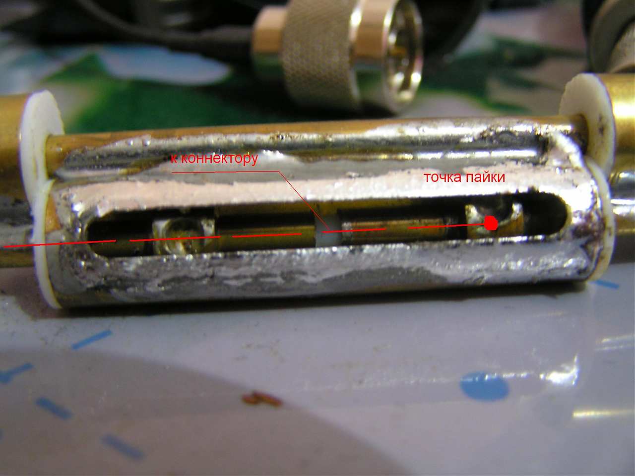 Тогда как ты осуществляешь согласование провода питания антенны, проходящего внутри тонкой трубки? Диаметр, провод и т.д.