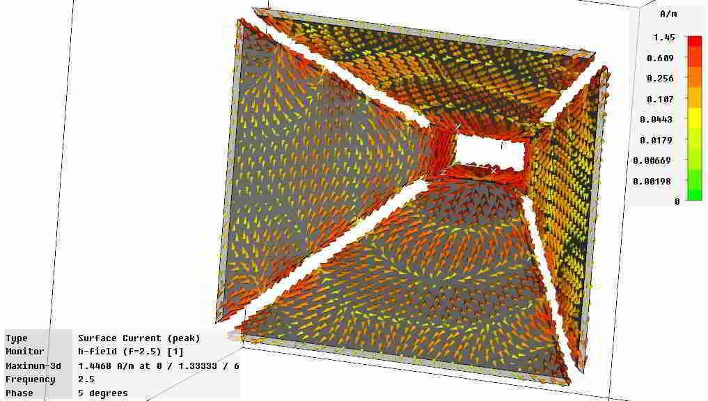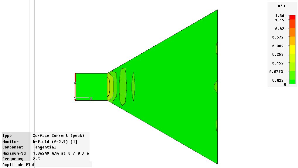 Я захотел проверить как поведёт себя патч элемент с рупором, стенки которого электирически не соединены.