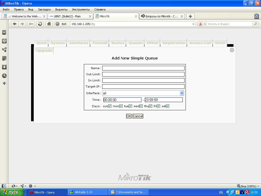 да. Но надо предусмотреть установку времени через прокси сервер времени , или бесперебойное питание.Сообщение от SDM78 Посмотреть сообщениеСпс, мануалы только курю пока (даже виртуалку пока не ставил, поэтому и вопрос такой)) Т.е тупо создать два Simple Queues с необходимым периодом действия ?