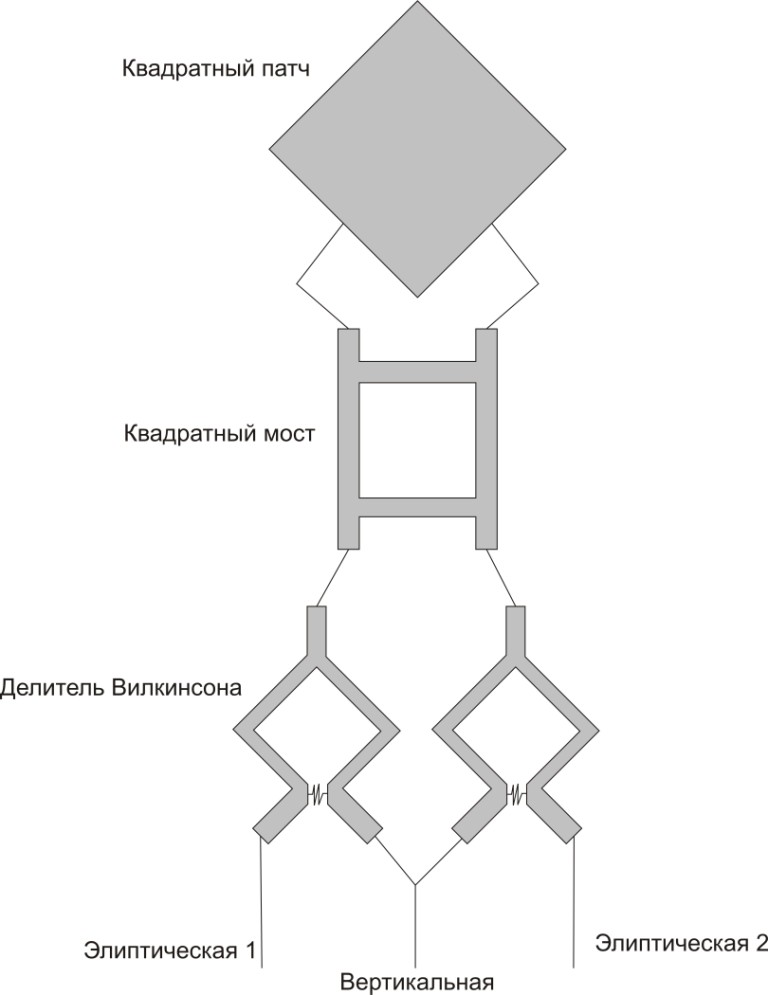 нужен именно вадратный мост у него на выходе разность фаз при делениимощности=90 гр.- самое то для получения элиптической поляризации.