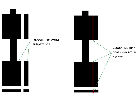 + Пайка вибраторов между квадратами потеря усиления.