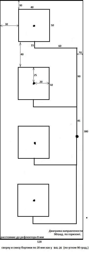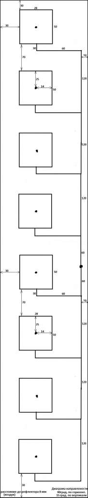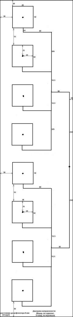 А вариант Ваш на 8ми патчах, судя по рисунку, плавно перешёл в параллельно последовательную запитку и при уходе в сторону от резонансной частоты, диаграмма будет "сыпаться" гораздо больше, чем при увеличении межэлементного расстояния.Вопросы технического характера в личку не задавайте! Всё-равно отправлю на форум!