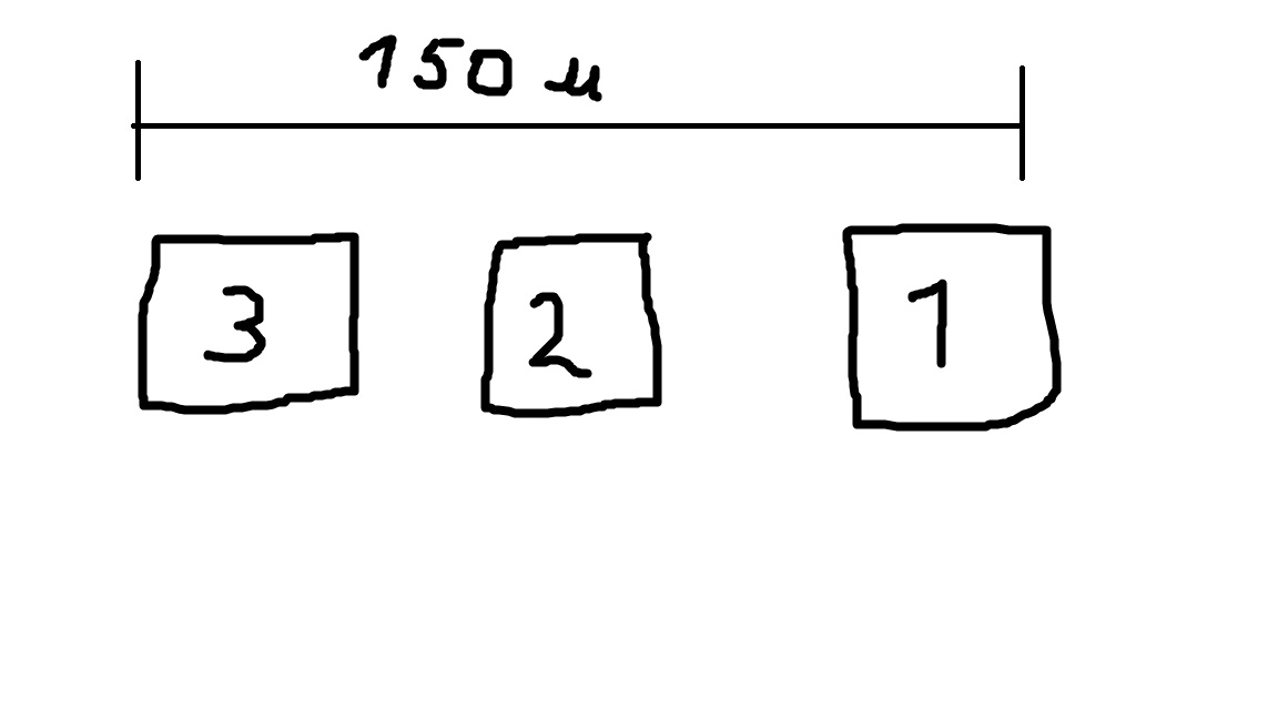 Расстояние от дома 1 (в нём будет стоять установка) до дома 3 - 150м.