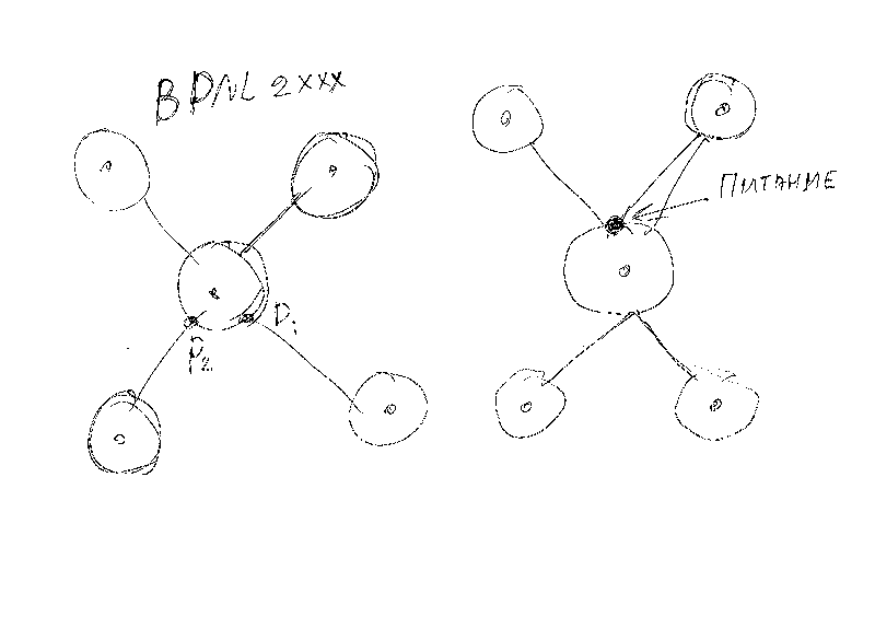 1) Если есть приборы для настройки КСВ, то запитку лучше делать посредине нижней линии, но в таком случае, антенна требует настройки (подгибание линий, КСВ плавает в пределах 1-2). Если приборов нет, то только по варианту из первого поста! Тем более, что каких либо закосов ДН на стандартных частотах по первому варианту антенны, не обнаружено.