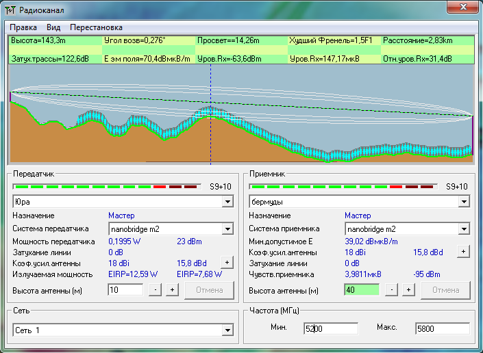 У меня прямая видимость есть, расстояние 1,5 км не более по прямой. Можно точку поднять выше и зона Френеля в радиусе 7 метров в середине дистанции очистися полностью.
