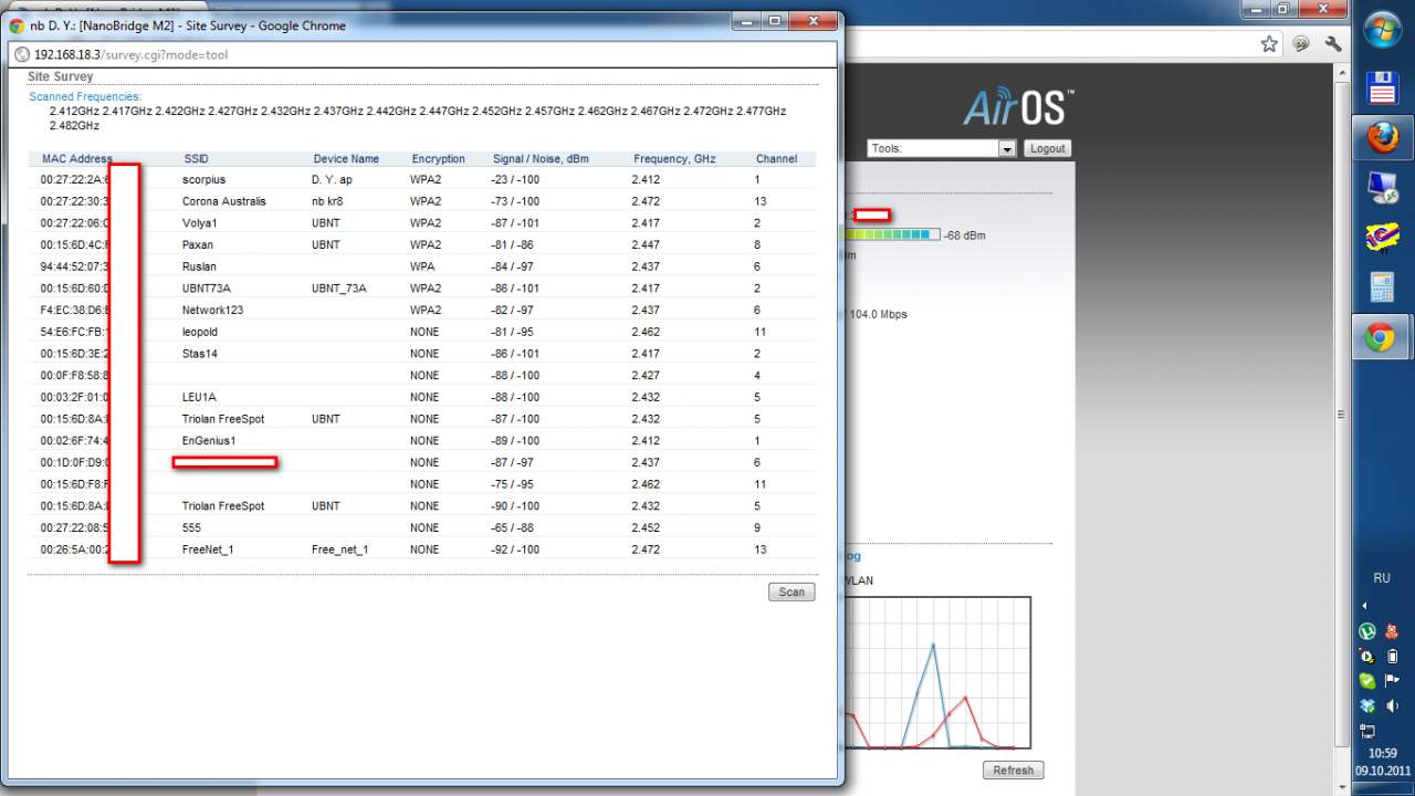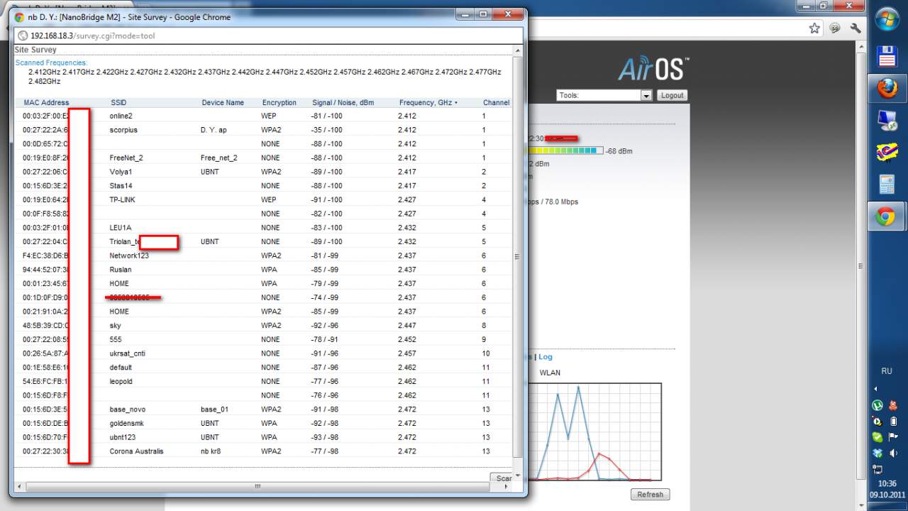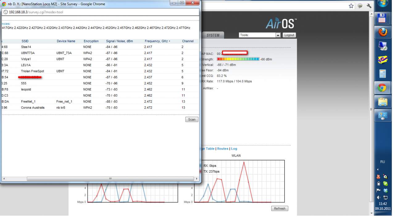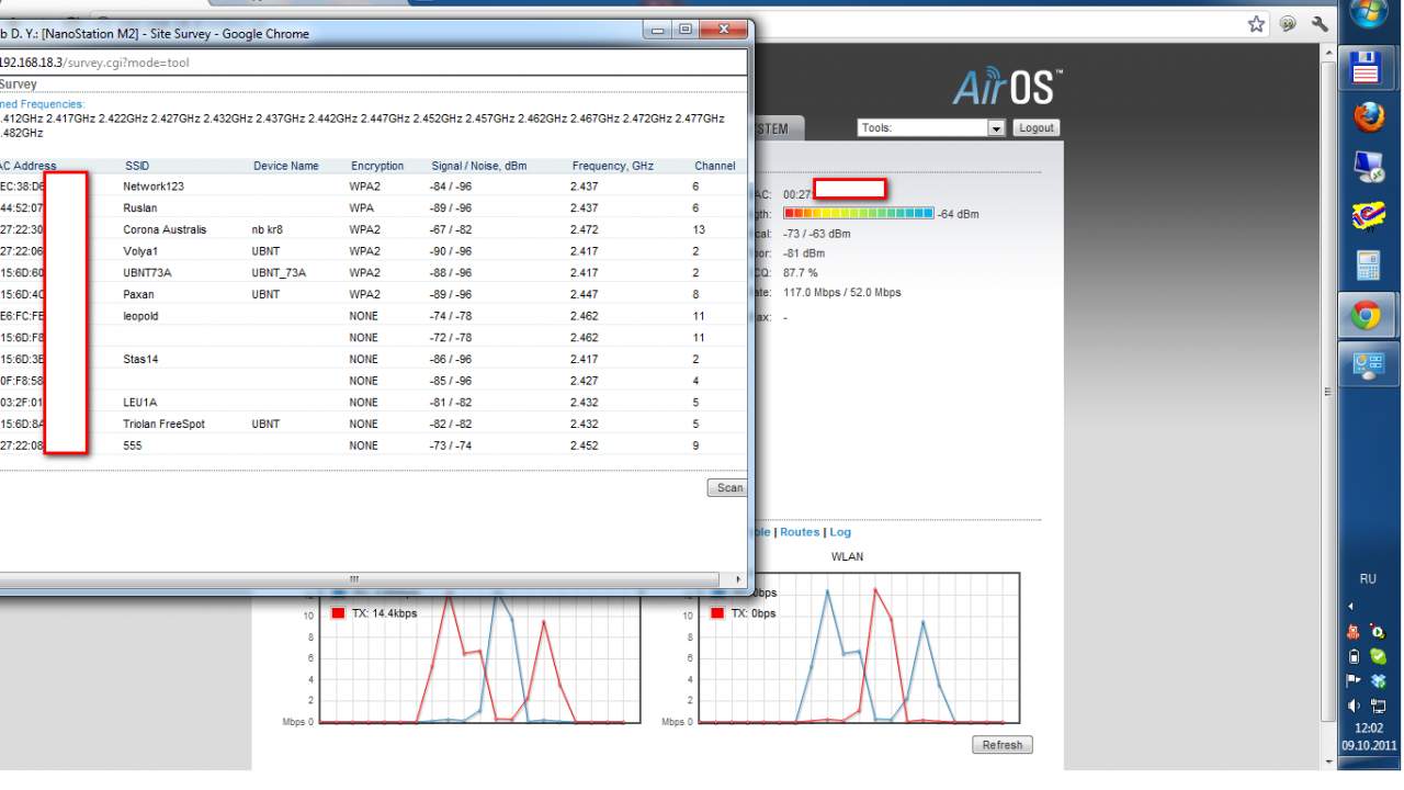 Уровень сигнала -68. Линк поднимался на 117 мбит, реально в среднем около 20 мегабит... иногда до сорока, иногда до 10. Станций много, шума много.