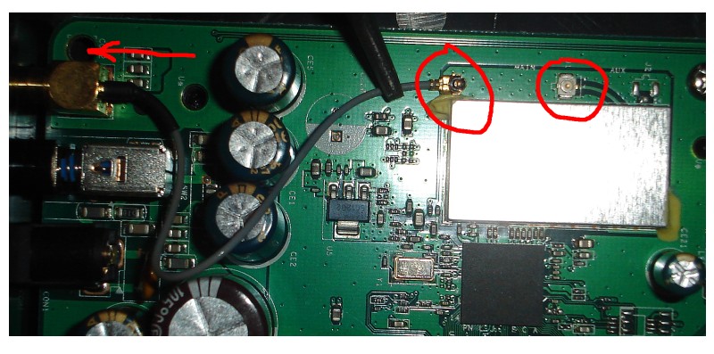 Появилось желание подключить внешнюю антенну к девайсу D-Link DWA-110, но когда я его вскрыл, то засомневался выйдет ли - уж больно все миниатюрное. И прежде чем срезать разъем решил посмотреть как выводяться кабеля с плат в заводском исполнении. Под рукой был D-Link DSL-2640U, вскрыв который я увидел разъем, аналогичный DWA-110 с установленным на нем кабелем 10 см длинной и заканчивающимся еще одним разъемом уже с резьбой, выступающей из корпуса самого аппарата.