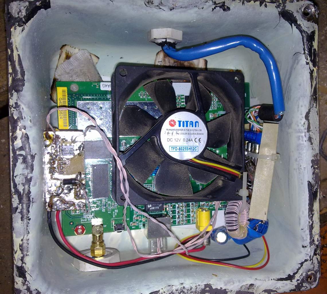 Наконец то нашел, через кого можно подключиться к городской сети и стабильному интернету. АДСЛ последний месяц почти не работает. По этому разморозил свой проект. 3 года прошло. Один комплект оборудования был смонтирован у меня. А у другв нет - пьет постоянно и только языком трепал. Из оборудования имею 2 тд 2100 прошитые в ББ, Пое на LM2678 И LM 2576. 2 кабельные сборки самодельные. кабель в них тоже самодельный: На RG58 c цельной медной жилой и оплеткой из фольги и жиденькой стали (?) надета медная оплетка от РК75 чуть большего диаметра, и все в термостатику, 40 см. Модули грозозащиты. одна антенна заводская, с логотипом JB. усиление 17 дб, волновой канал. вторая самодельная, спираль. на ней пробовал связаться со штатной - 11 мбит соединение в режиме b - с балкона в руке держал (900м). Вот немного фоток, может кому пригодиться. простоло на улице 3 года. все на автомобильном герметике, ничего не сгнило, только краска на крышке "кастрюли" потрескалась. Разобрал, потому что два продохранителя увеличили свое сопротивление до 30 ом. Которые хранились дома тоже так, некоторые. Надо на что-то менять:(