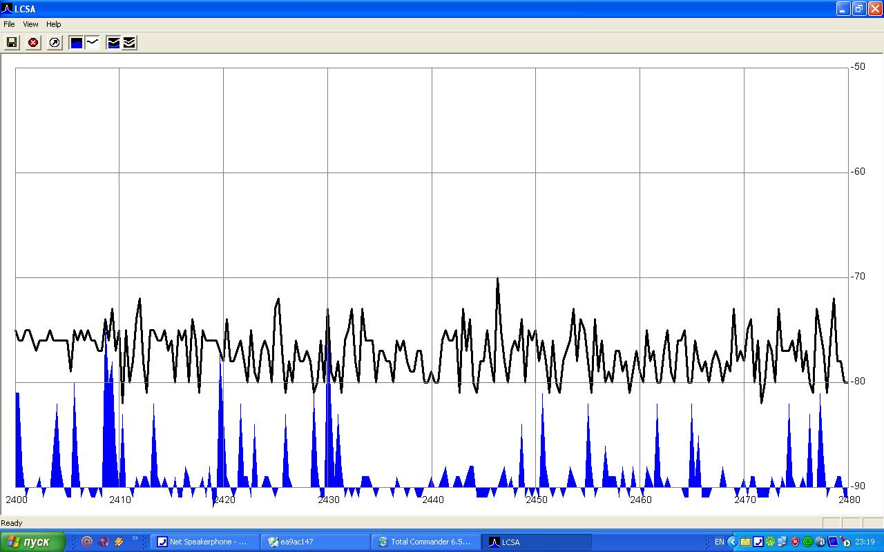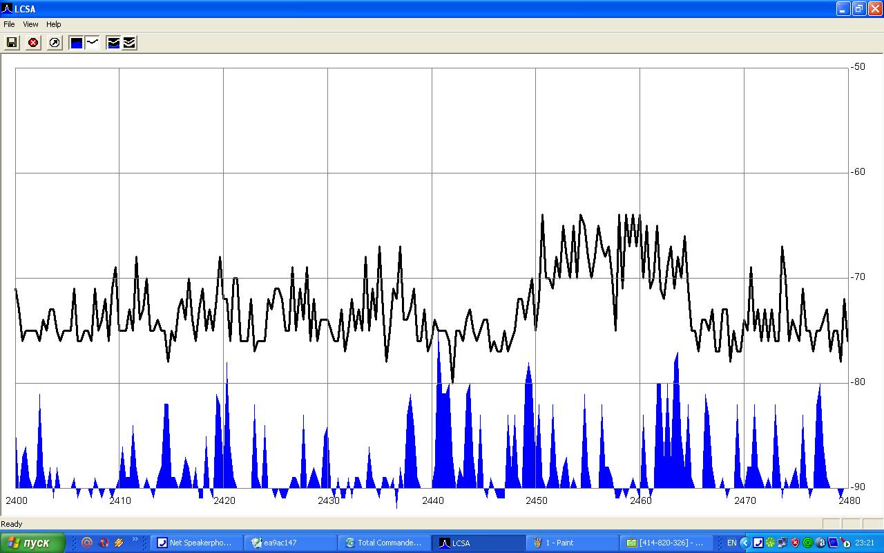 И того. Приемник имеет высокую чювствительность и большие шумы, на графике получаеться большой размах амплитуды шумов+дискретная частота сканирования+медленное сканирование----получаеться "бегущий" график. Без фиксации пиков амплитуды вы не чего на нем не поймете.