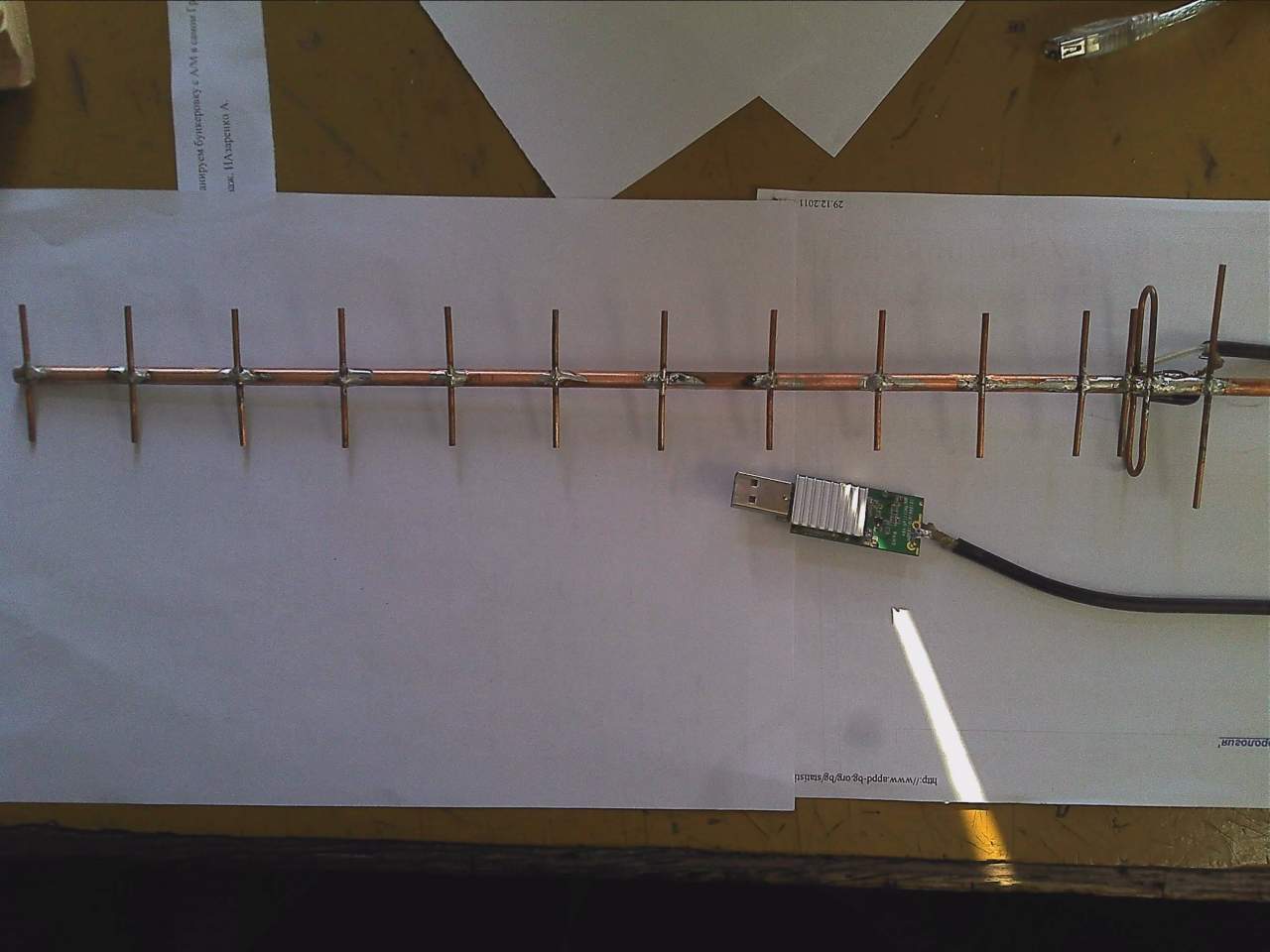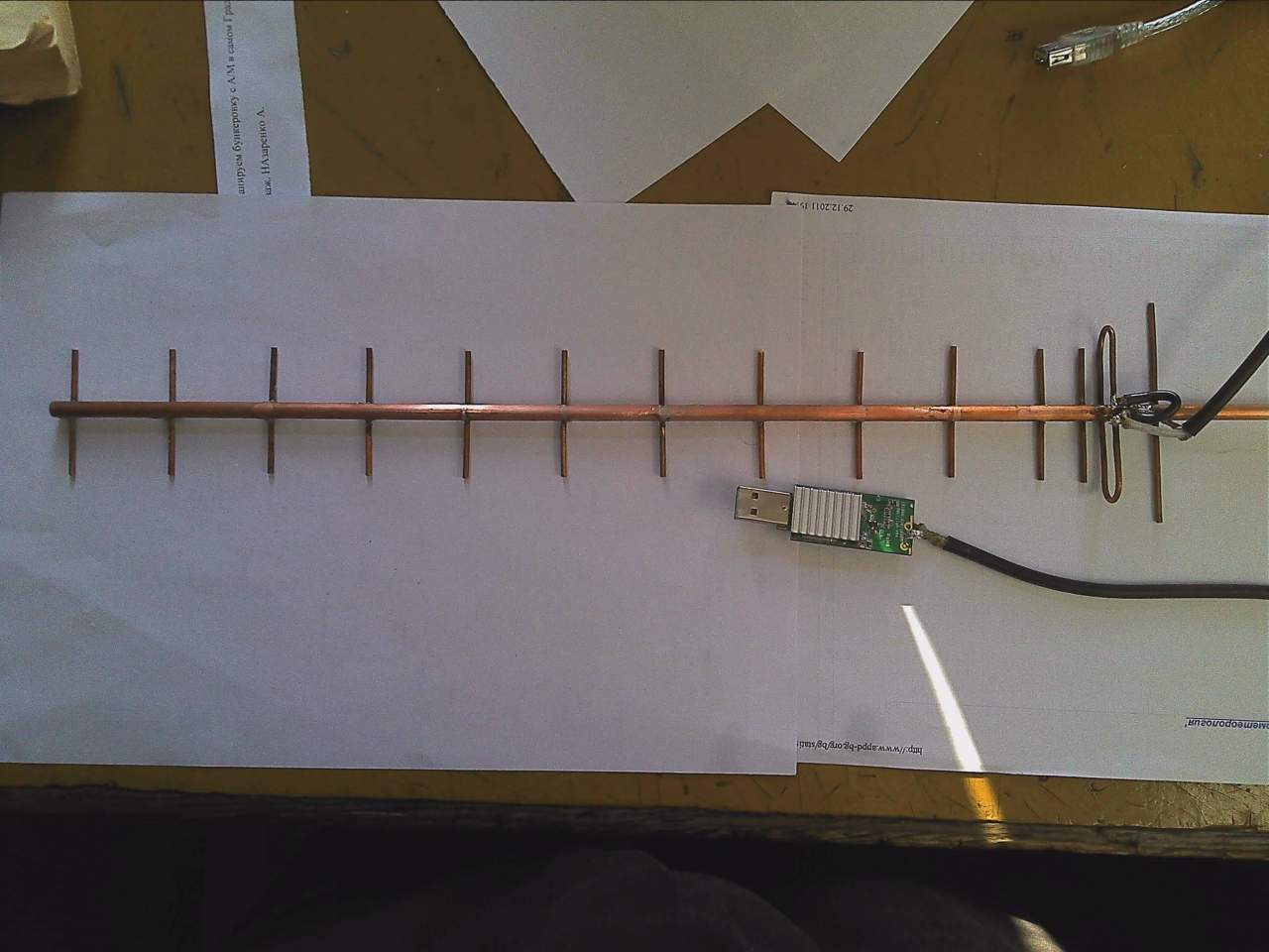 1. Кабель, припаянный к вибратору, без оплётки, на этих частотах сам по себе образует антенну типа диполя. Поэтому сигнал рассеивается в ней и до настоящей антенны как бы ничего и не доходит.