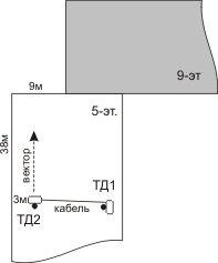 Вы не совсем так поняли. ТД1 и ТД2 между собой работают по кабелю. По радио они работают с другими точками на расстоянии 700 и 1000м. Уровень сигнала на обоих порядка 30дБ, мощность в пределах 100мВт.
