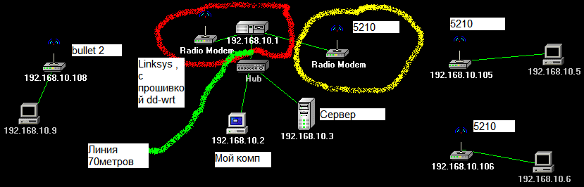если верить замерителю точки 5210 то скорость до 1 клиента 10/5 , до второго клиента 18/12 , ну в принципе это так и было , только не понятно почему так пинг подскочил до базы ...