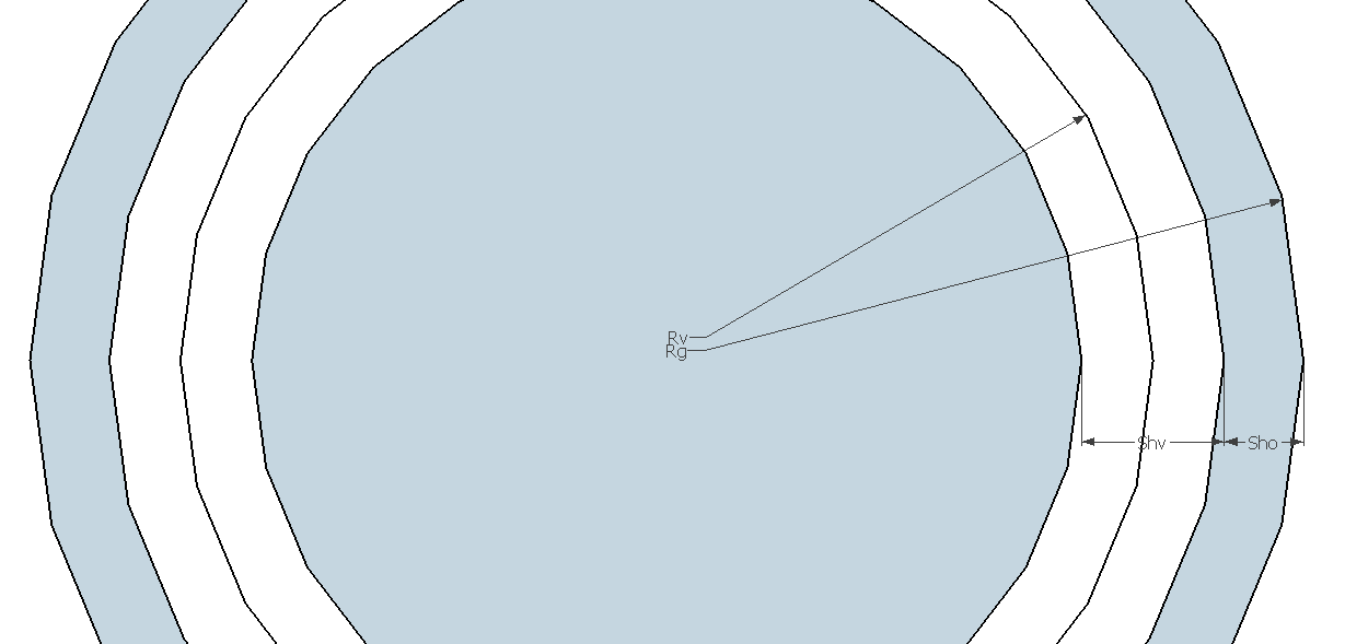 для того что бы в оптимизаторе не получить радиус выреза + 1/2 ширины выреза больше либо равным радиуса габарита, его нужно задавать не как у тебя в явном виде, а через формулу, при этом добавить еще одну переменную- ширина внешней части (Sho). получится примерно так: Rv=Rg-Sho-Shv/2. да, больше переменных, которые по сути дублируют друг друга, но так модель не поломается никогда. в принципе, от переменной Rv можно будет уйти при такой записи, она по сути дублирующая получается, но выражения будут нечитабельно большими.