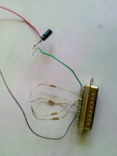 разъем лпт с сопротивлениями 150 Ом,конденсатором и провода питания мс.