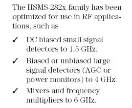 Относительно максимальной рабочей частоты hsms-282x в даташите есть вот что (и это радует), 10...100mW, которые будут на входе - это отнюдь не "small signal" , думаю, сабж не только 4 гига, а и 6 потянет