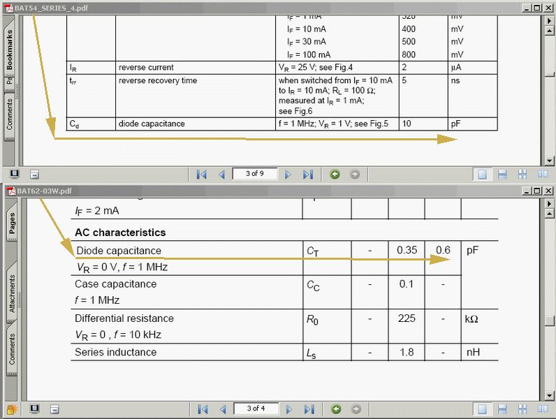 Я предпологаю что bat54 будет хуже детектировать (меньше амплитуда тока на выходе), чем bat62, но за неимением последнего, для меня и 54 за счастье. Если не трудно то попробуйте сравнить 54 с 62 на практике, и просветите остальных. Да решил добавить, паять очень акуратно, как можно меньшей температурой паяльника, легкоплавким припоем, да и паяльнику непомешало бы заземление. я умудрился два диода убить: первый после нескольких перепаек сильно горячим паяльником просто разволился на две части, второй вышел из строя по непонятным причинам.