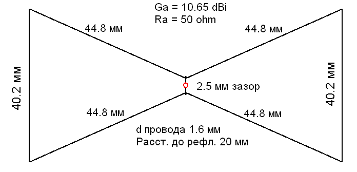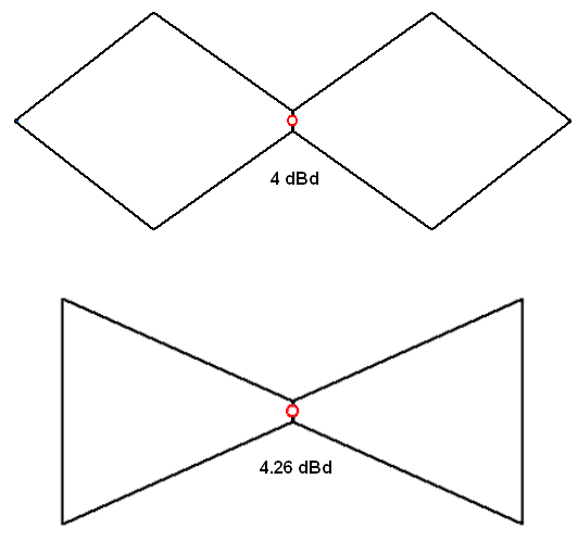 У бидельты (чаще её называют "бабочка") усиление на один с лишним дБ выше (посмотрите в MMANA). Да и согнуть её проще. Входное сопротивление, как и у биквадрата, зависит от пропорций - можно получить и 50, и 75 Ом.