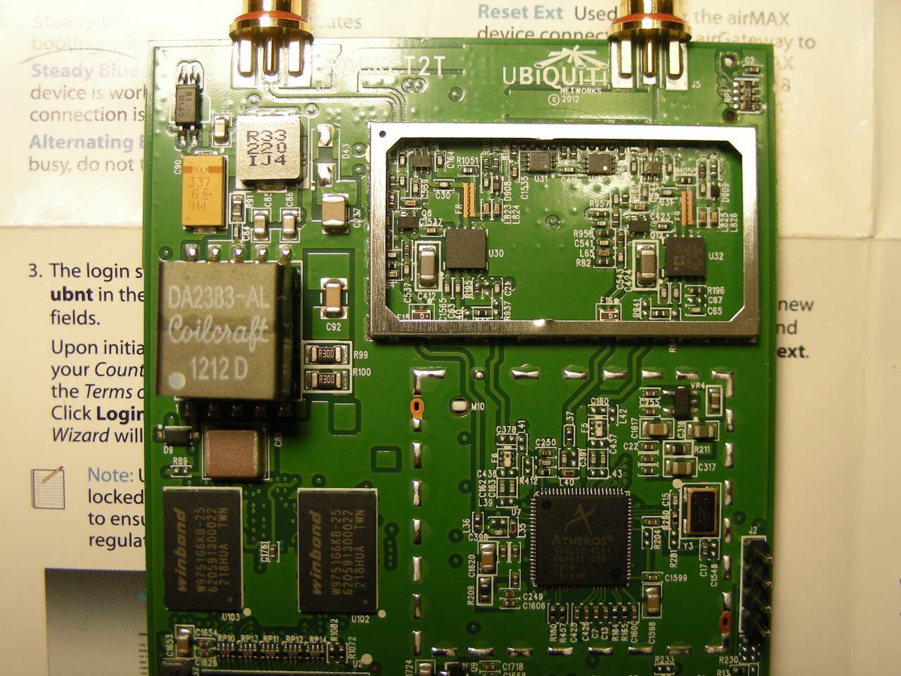 Что конкретно очень не понравилось: на ФИРМЕННЫХ!!! фирменных платах Ubiquiti везде остатки пайки, как будто брызгало во все стороны припоем при паянии. Причём мелкие такие шарики и местами разливные микробрызги, могли и под чипы попасть и дорожки замкнуть. Пока разбирал, ногтём сцарапал брызги, удалились вроде хорошо. Грязь на логотипе Ubuiqiti видно на AirGateway, их в Китае лепят не на фабриках, а в подвалах чтоле?