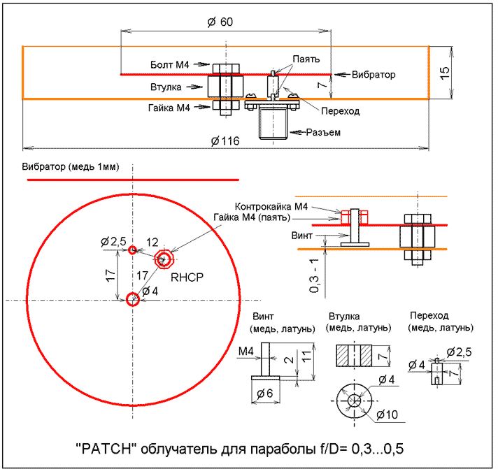 И вопрос, есть ли в открытом доступе чертежи RHCP\LHCP антеннки такого же конструктива(патч-яги, не обязательно с болтиком), может чуть поменьше? Или четырехвитковые спирали сразу к роутеру прилепить, длиннее просто в коробку не влезут.