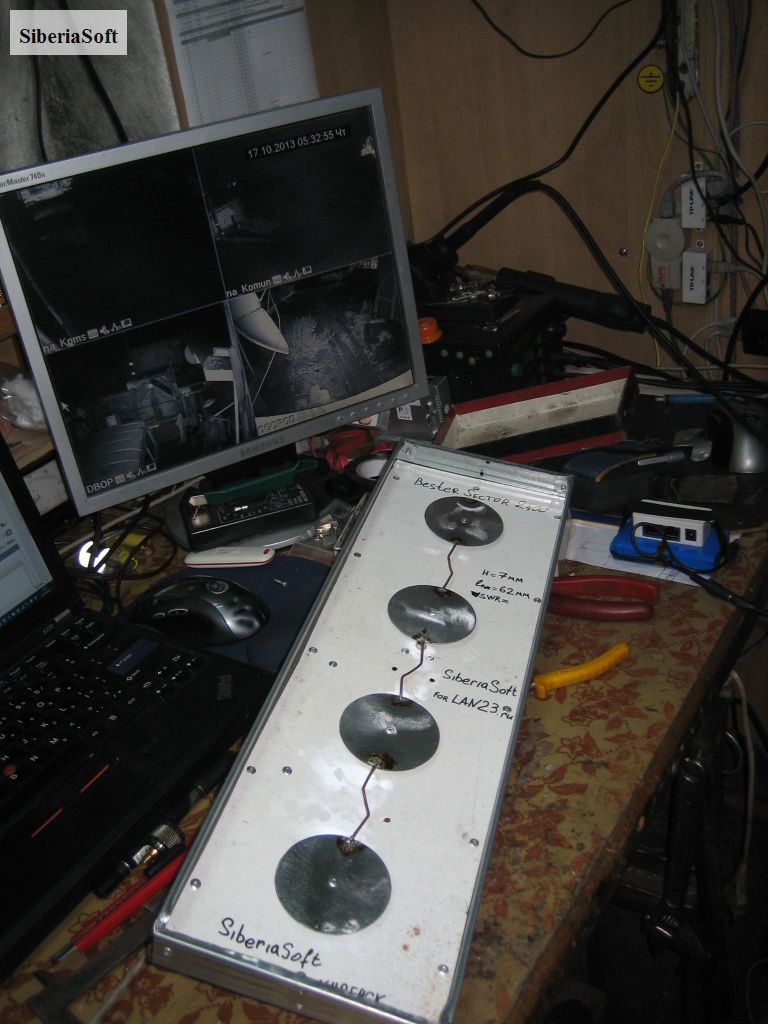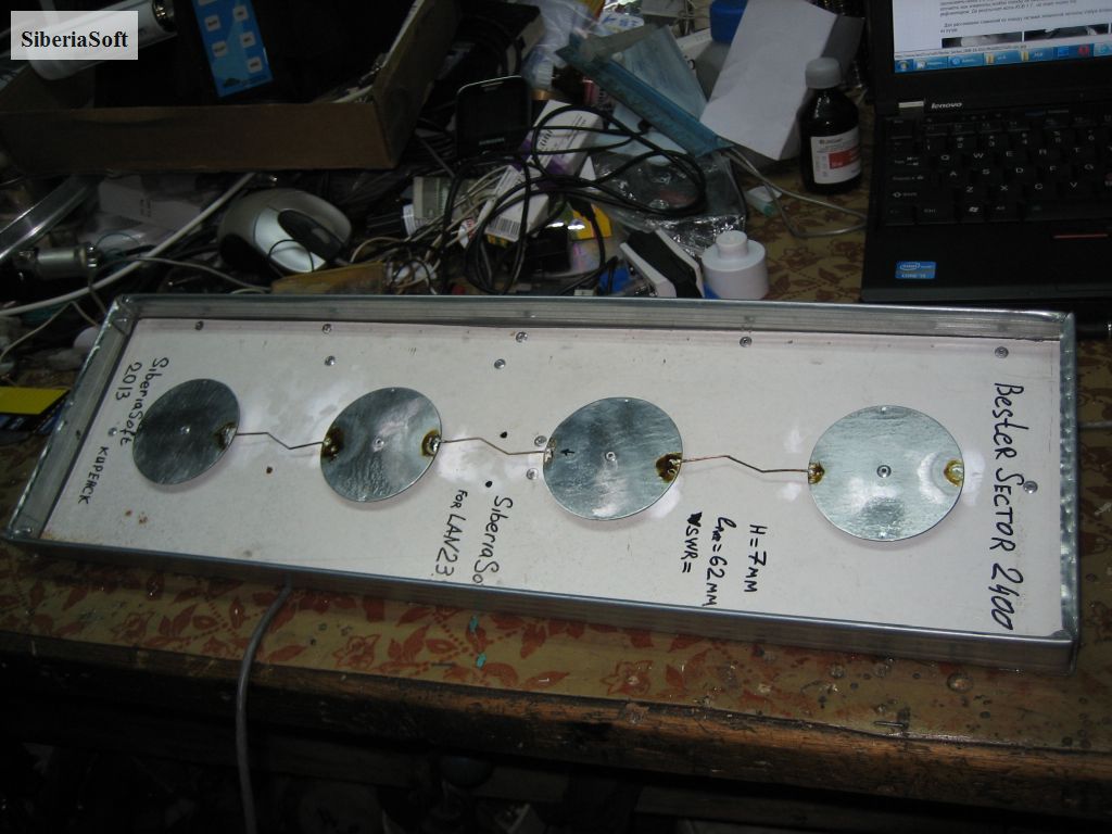 Хорошо работает на плоском рефлекторе в ПВХ воздуховоде 40х110мм. (усиление падает совсем на децал...)