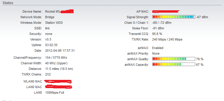 Up'ну тему дабы отписаться о результатах. Может кому интересно. С двух сторон Rocket M5 + RocketDish5-30. С одной стороны место установки - 9-ти этажка, с другой на мачне (на уровне 8-9 метров от земли).