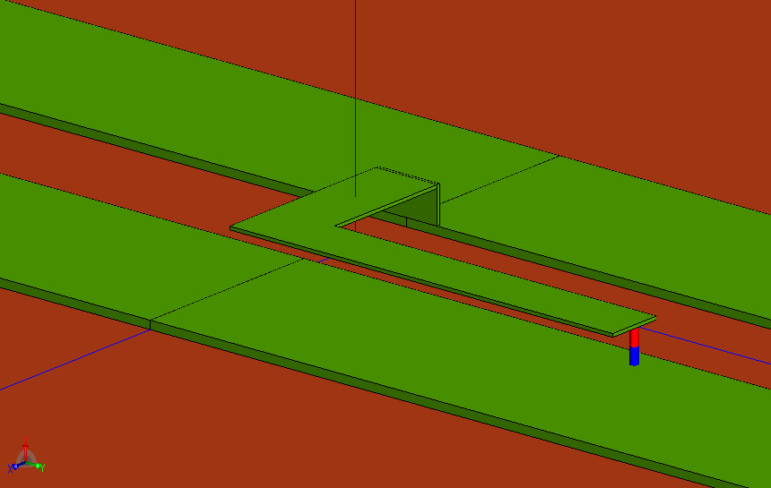Антенна из первого поста и последняя только внешне похожи. Первая, это два синфазных волновых вибратора, а последняя - даже не знаю как и назвать. Я её и моделировать то начал от удивления: " Как две симметричные замкнутые линии излучают?". Судя по габариту бабочек, эта антенна похожа на 4-е патча со странной схемой запитки. Либо это два неразрезных полутора волновых излучателя с трансформацией низкого импеданса входа к точкам общей запитки, что больше походит на правду.