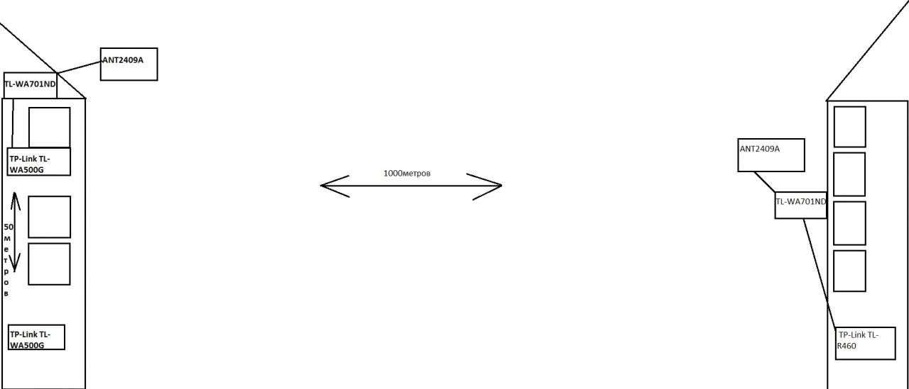 Подойдет ли оборудования для создания линка на 1000 метров видимость не прямая мешают 3 дерева ? вот схема и ссылки на оборудования да бы избавить от поиска: