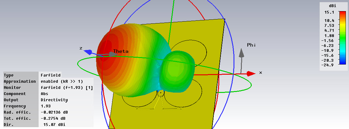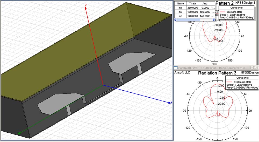 Поздравляем, вполне рабочие характеристики. Можете, для приближения к реальности, добавить в модель радом ( защитную пластиковую коробку или хотя бы пластину из пластика перед патчами). Посмотрите как пластиковый короб влияет на характеристики антенны.