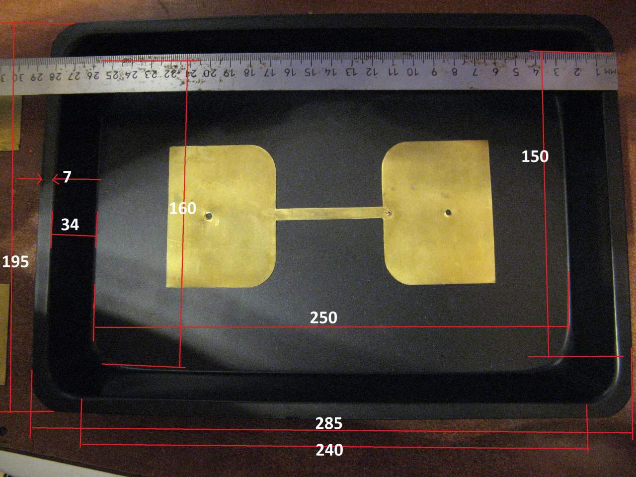 S=12mm. h=34mm (до белой пластины) и h=40мм (до дна ванночки) AXB=240mm. axb=125mm