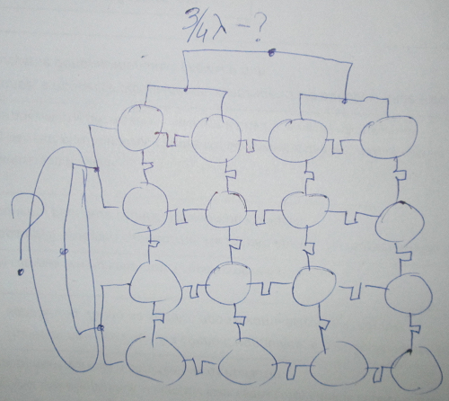 Понятно, что изображение с ошибками, но идея, полагаю, ясна. К уже опробованным вариантам на форуме добавляется еще один сплиттер для раздачи на два других. Длины плечей у него геометрически получаются больше и их надо компенсировать электрически, делая кратными полуволне или четверти. Для попадания в пучность.