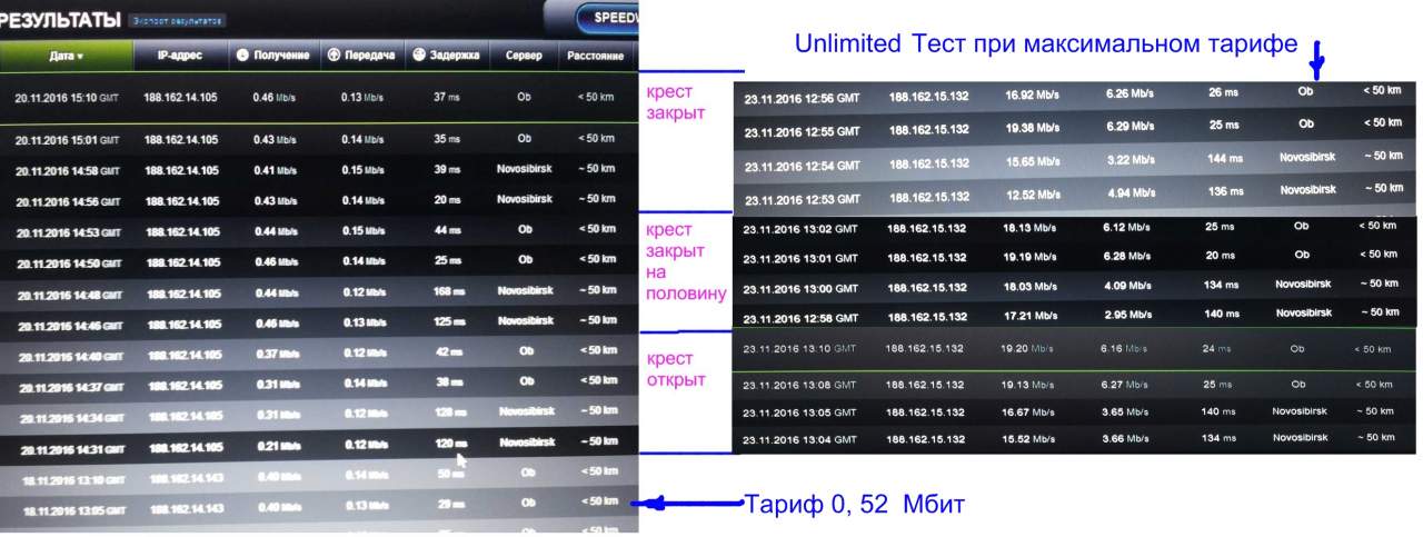 Лично я не могу однозначно сказать, влияет или нет крест на скорость. Скорее нет, чем даСообщение от starik0 Посмотреть сообщениеПерешел на безлимитный тариф получил такие результаты в городских условиях. Да, смайлик забираю