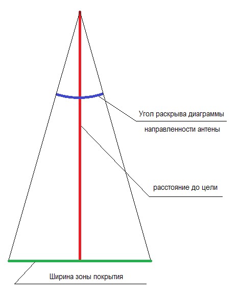 Может кому нибудь понадобится расчитать ширину зоны покрытия антены при известном угле диаграммы направленности и расстоянии до противоположной антены.