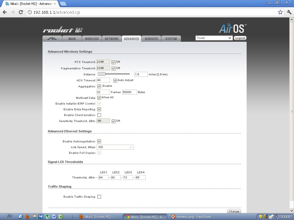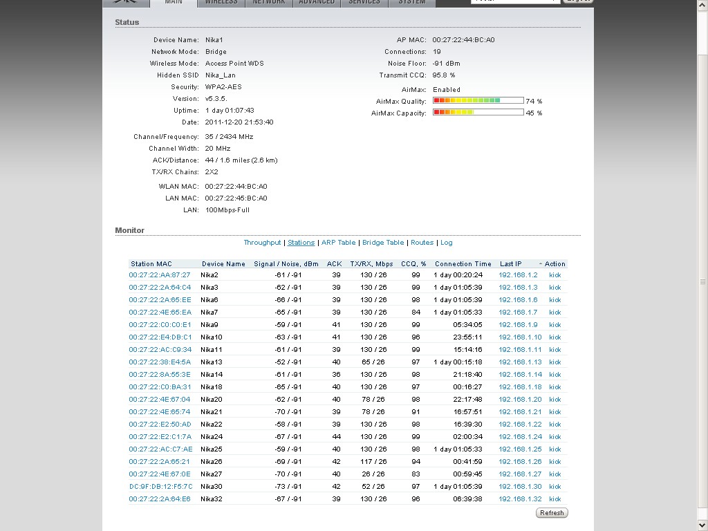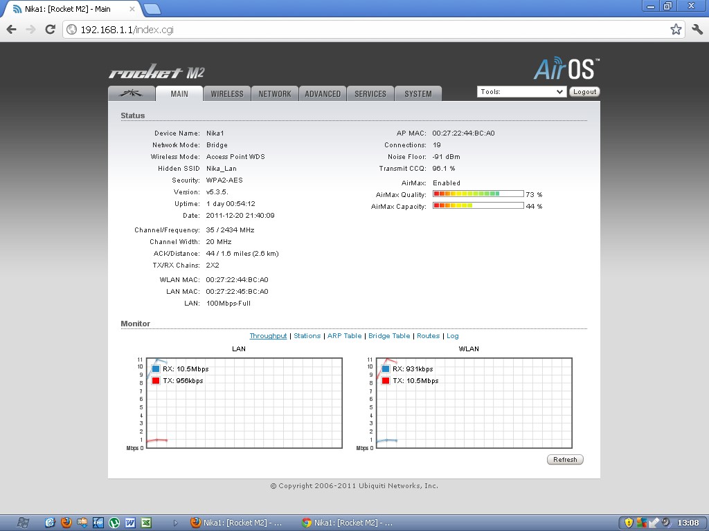 У меня стоит базовая станция Rocket M2 + AirMax Sector 2G-16-90 на 20-25 человек со скоростями от 2-х до 6 Мбит (у клиентов стоят Nanostation M2 и Loco M2.) И как бы уже в часы пик не хватает скорости для всех. Если захожу на базовую станцию и смотрю по графику общий траффик - то там показывает не больше 12 Мбит (всегда), хотя вроде должен около 40 Мбит показывать. Подскажите, може в настройках че поменять? На базе ограничений по скорости нет.