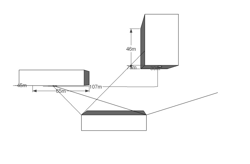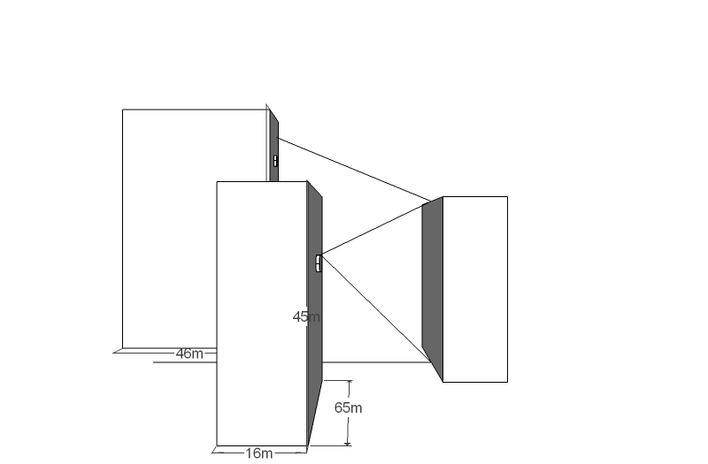 Поиском по сайту упорно пользовался, нашел с пяток вопросов, похожих на мой, и ответом было: "в поиске такие вопросы есть". Не обессудьте, не нашел, вот и пишу, киньте ссылку, если было. Плюс ко всему, третье, с первого взгляда лишнее, здание на схеме, изображено не просто так. Чутье подсказывает, что можно использовать отраженный сигнал. А это, в свою очередь, возможно, делает случай уникальным, из-за уникальной геометрии. Знакомых в третьем доме нет.