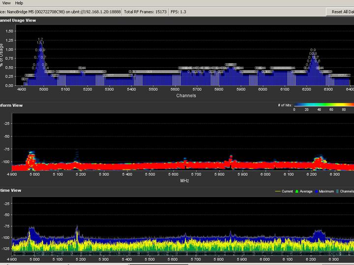 Начинаю монтировать мост, на основе NanoBridge M5. Дистанция около 1 км, пригород. Пока установиль лишь одно устройство - т.с. клиента. С помощью AirView, понаблюдал суточную обстановку в эфире, она стабильна. Прошу выссказать соображения по выбору рабочей частоты, на основе наблюдения.