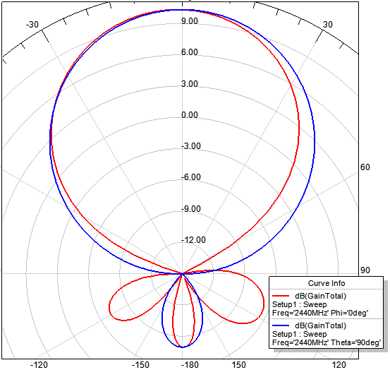 2) Вариант с бортиками 30 мм: 11.3-11.5 dBi вперёд, задний лепесток -7 dBi, два лепестка сзади вверх/вних +-45 - по -4 dBi