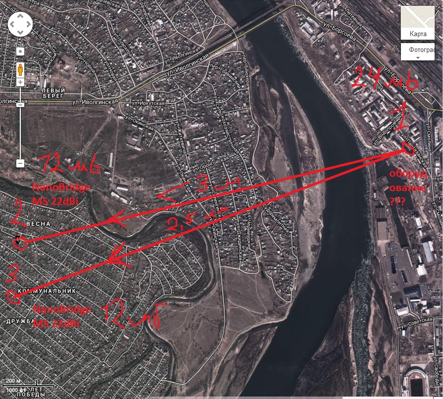 Имею два Ubiquiti NanoBridge M5 22dBi. Соответственно два клиента. Расстояние 3км.