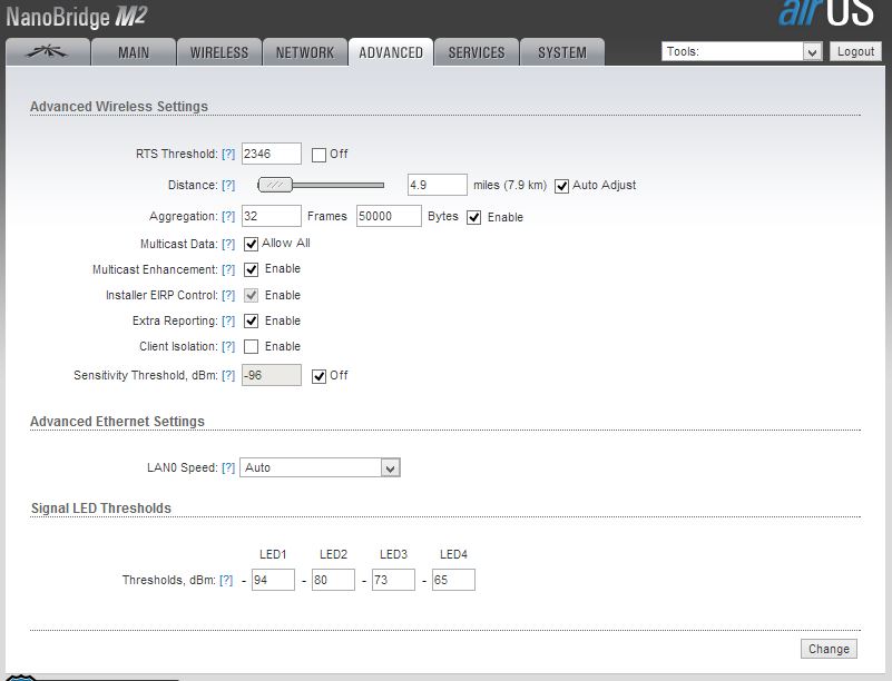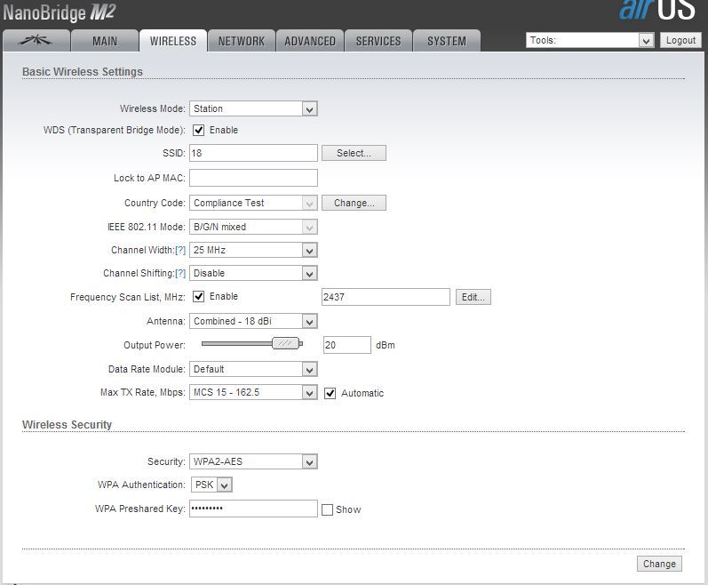 Аирмакс включить, частоты нужно поменять, добавить мощности антеннам, 20 мгц поставить, дистанцию поменять, либо поставить 40 мгц.