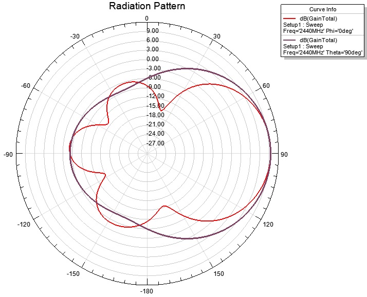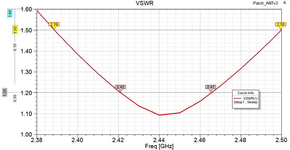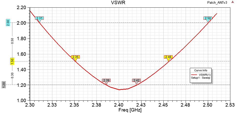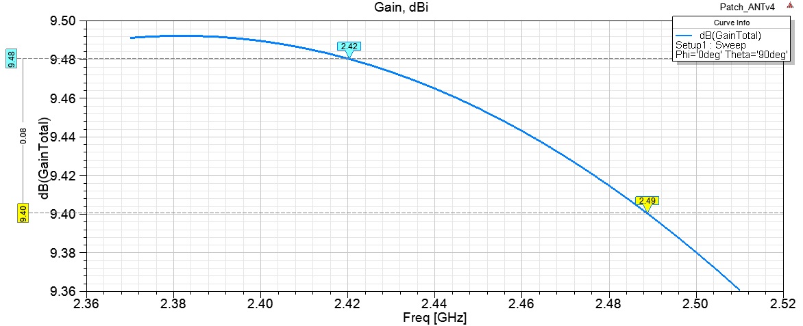 Пока отцентрировал на 2.44 ГГц, убрав по 1 мм с ширины и высоты патча 57х53.5 мм