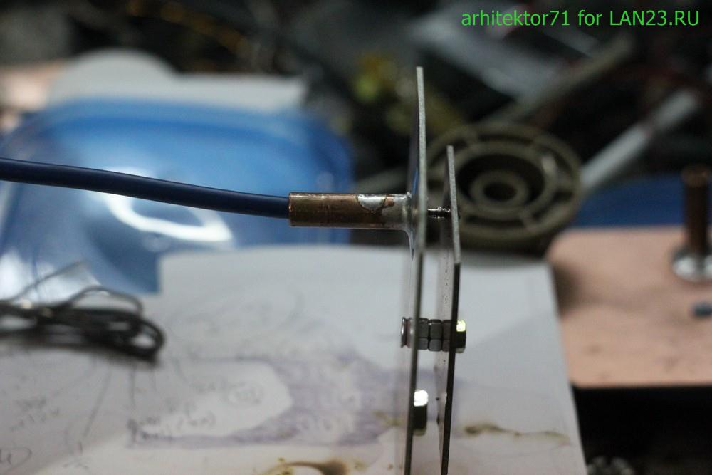 начал по всюду собирать обрезки цвет.металла, и делать нужные мне и нужного диаметра(под кабель) "F-гайки" сам. латунь вещь замечательная. и паять удобно - налудил и там и там, а потом горелочкой дунул и пинцетом посадил куда надо.