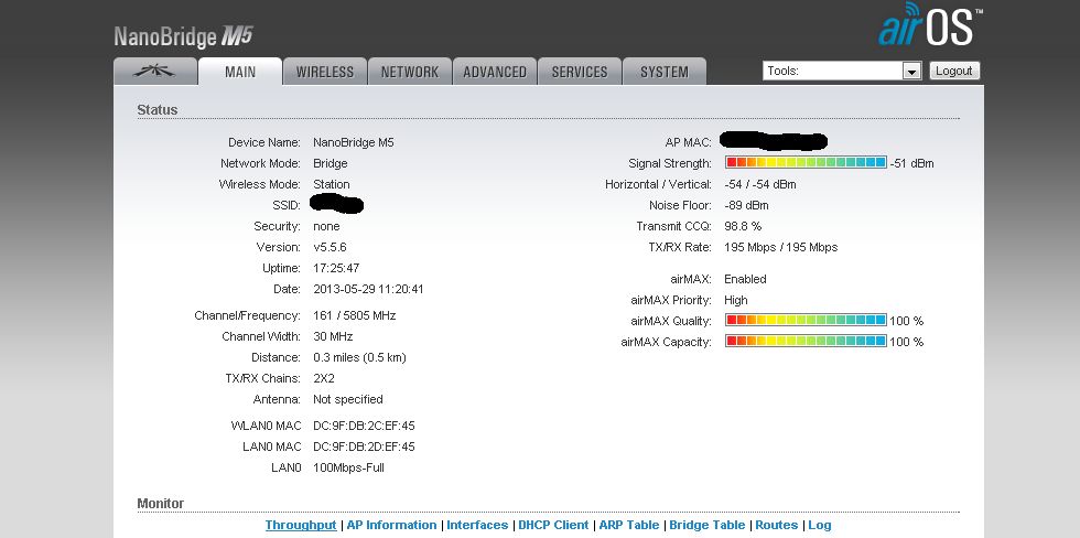 Здравствуйте!Прошу помощи с настройкой моста в режиме WDS.Итак,имеется мост из двух nanobridge m5,провайдер дает инет по PPPoE.Схема моста такая:Пров->nanobridge m5 AP(Airmax включён)->nanobridge m5 ST->роутер Zyxel keenetik lite(с него поднимается PPPoE).В принципе всё работает нормально,авторизация проходит,но нужен именно прозрачный мост WDS,если обе точки ставишь в режим WDS(AP WDS и ST WDS),то PPPoE не поднимается,стоит только ST WDS вернуть в просто ST,то всё работает.Привязка по MAC у Провайдера отключена.Может что не так делаю?Скрины ниже.