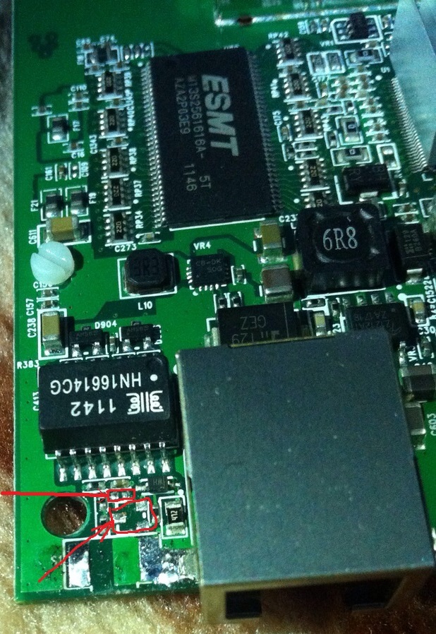 Люди добрые помогите ,, при нажатий кнопки Reset в nanostation m2 от усилий слетела кнопка место с ней транзистор и резистор , показаны стрелкой , нужны их маркировка и номинал,кто может помочь помогите ,ПжНажмите на изображение для увеличения.