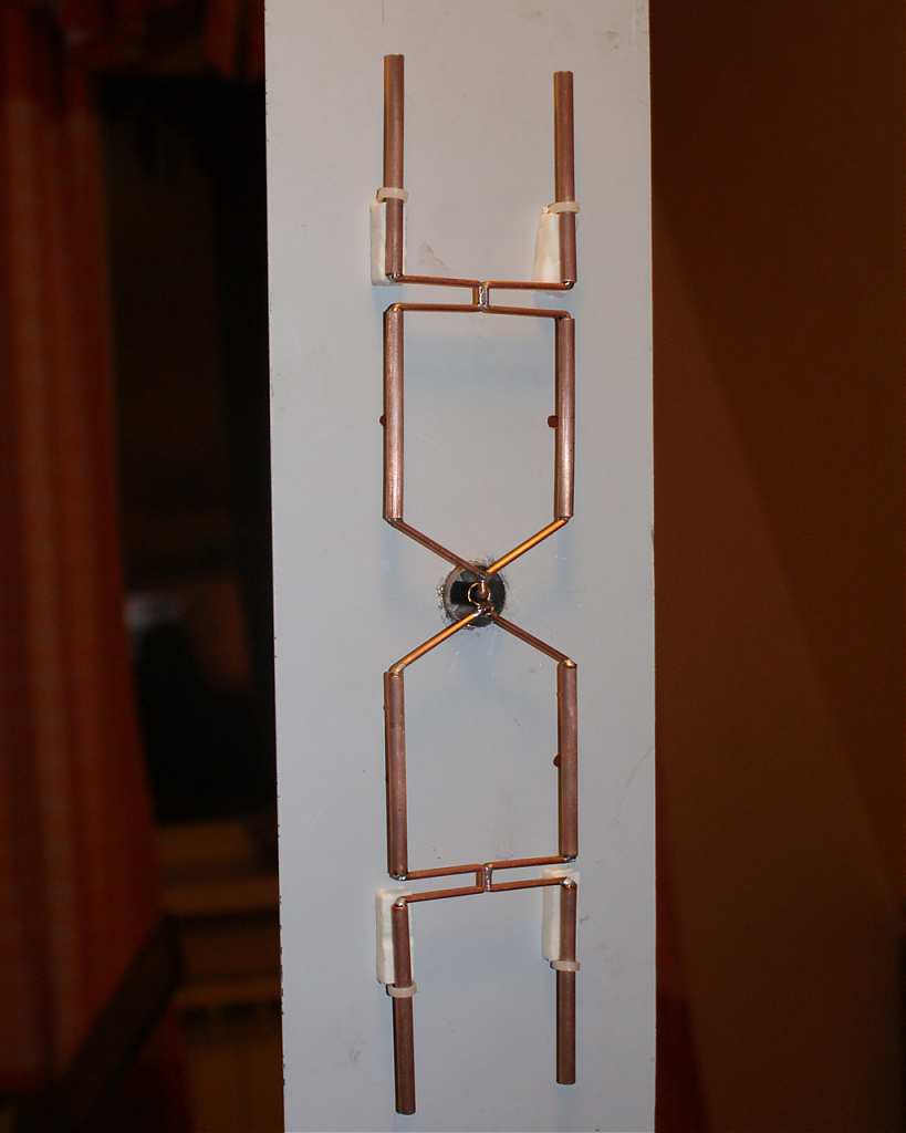 Я потом когда доводил свою модель, вибраторы сделал немного длиннее(почти 5/8 Л), а мосточки соответственно короче. Получилось немного больше усиления по сравнению с полволновыми вибраторами...