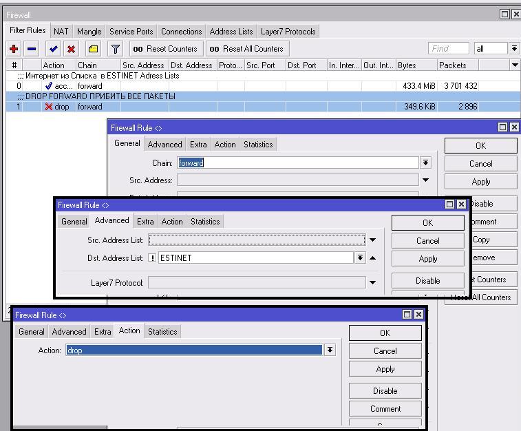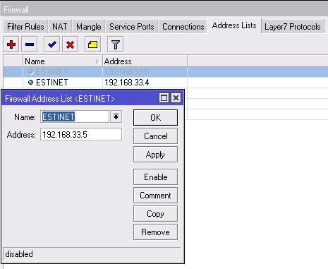 3.Соответственно есть список ESTINET в котором все IP пользователей ненужных выключаем (или включаем) из списка.