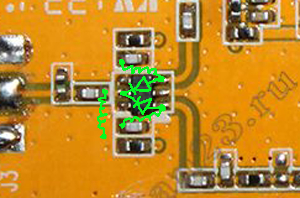 Понадобится 3 СМД дросселя индуктивностью от 10 до 33 наногенри и два пин-диода. Диоды лучше взять из дуплексеров старых сотовых телефонов, или из спутниковых "дисеков".