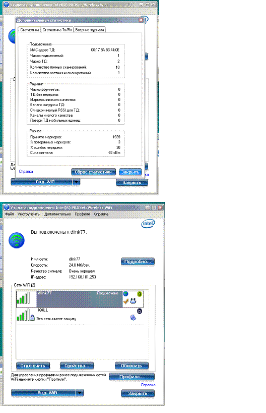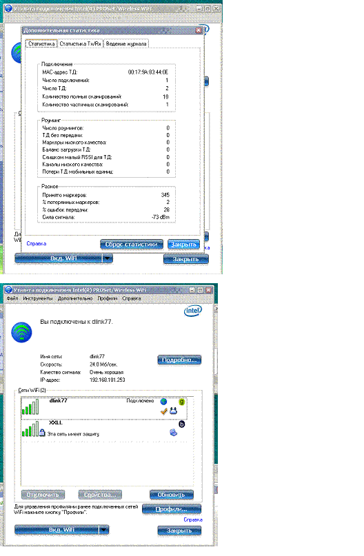 В зависимости от местанахождения уровень приемного сигнала в ноуте менлся от -25 до -62 дБм.