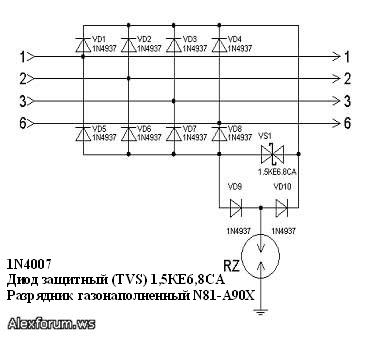 Ну это-то понятно... не понятно нафига там разрядник? Почему бы вместо него не поставить тот же супрессор с пропуском по току "тудым-сюдым", т.е. в обе стороны? Разрядник сработает при напряжении 75 вольт (на нижнее напряжение у нас не продают), а супрессор при достижении напряжения 6,8 Вольт станет перемычкой. Т.е. выходит, что применение супрессора вместо разрядника будет эффективнее? Второе. Паралельно разрядникам ещё иногда ставят варисторы (в супер-пупер заводских грозозащитах).Для чего? Варистор тоже становится перемычкой при достижении определённого напряжения. Не тот же супрессор? Разрядник в таком случае становится на второе место. Смысл в разряднике вот не пойму.Сообщение от Алексей Посмотреть сообщениесупрессор,разрядник, и 8диодов, вот и вся защита. да и заземление надо хорошее и только с одной стороны.