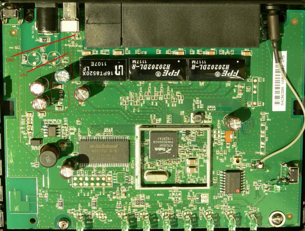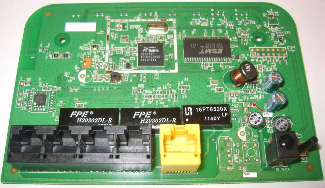 В общем, залил я в неё распоследнюю openwrt, распаял разьём (питание взял на той самой дороге без компонентов)