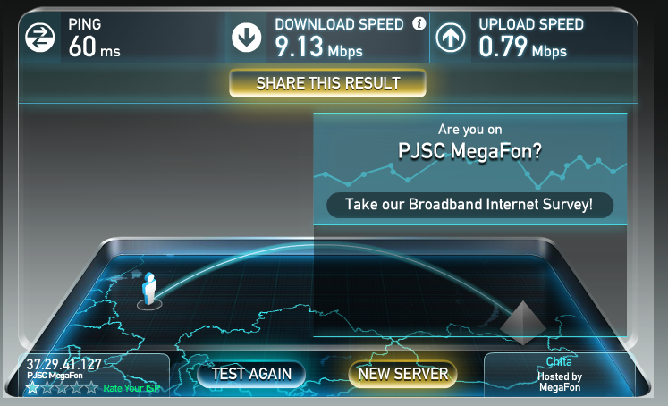 в итоге сигнал 98-100Дб связь не рвется скорость ко мне 0.8-1.3 мгб от меня 0.2мгб.